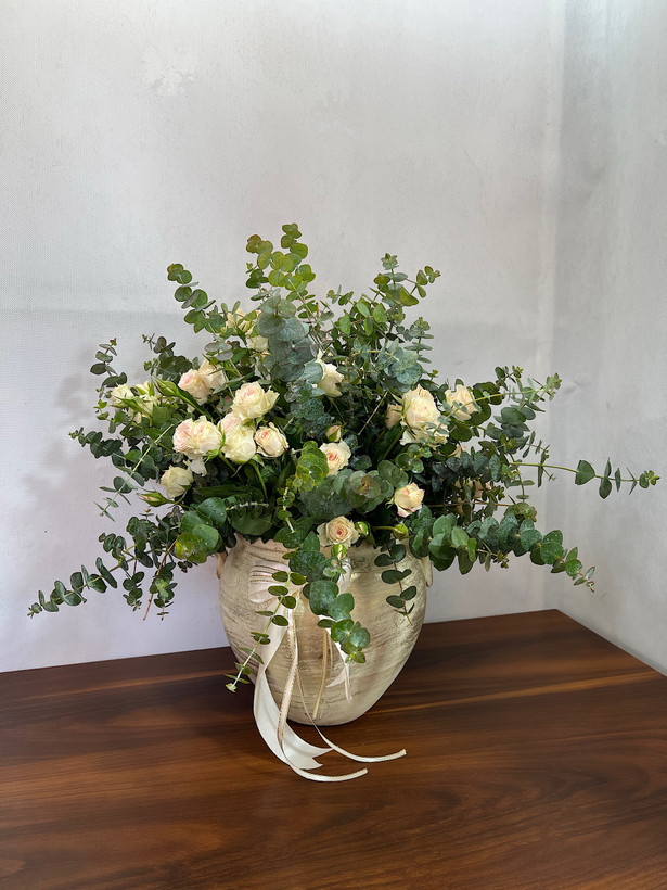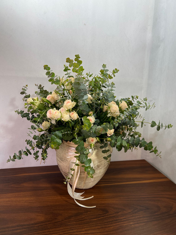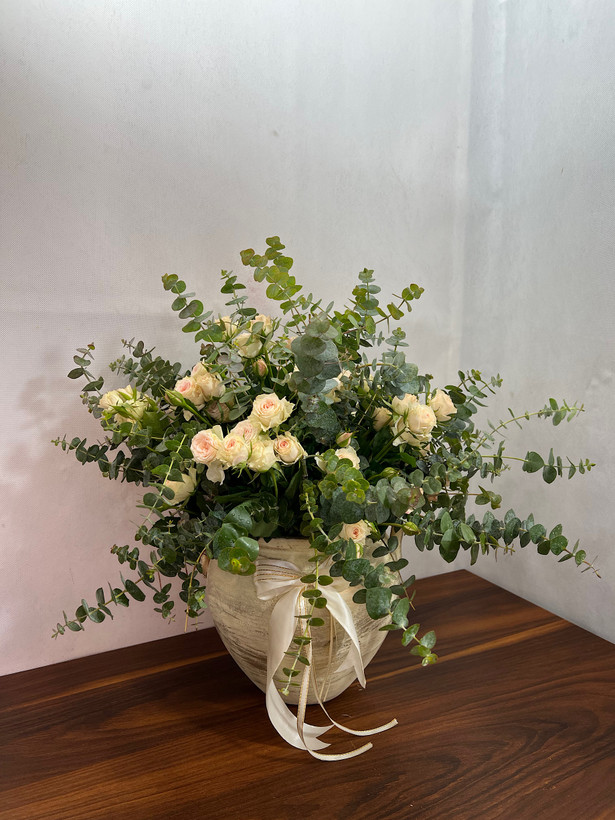 باکس سفالی آنتیک با گل رز مینیاتوری فلوبار