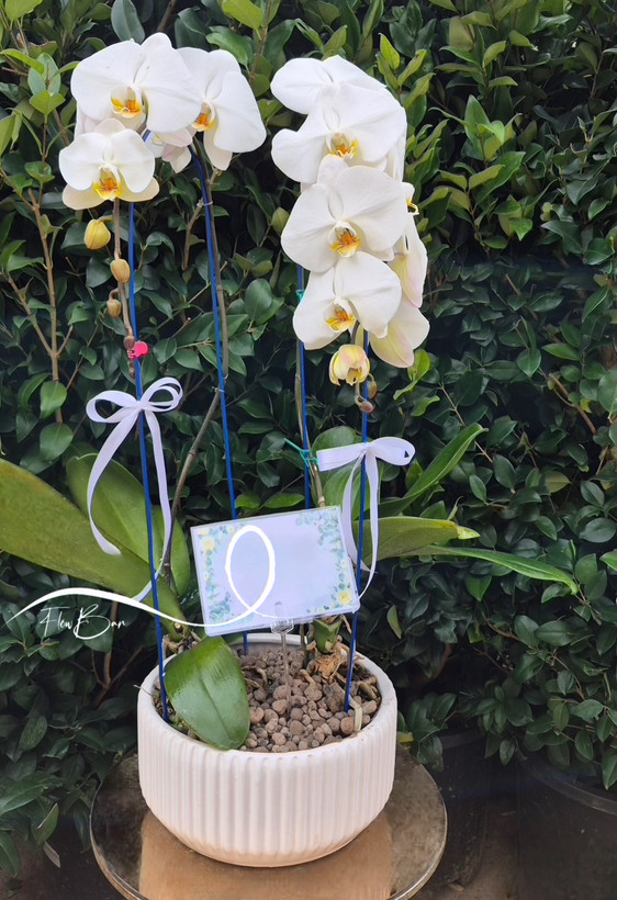 گلدان ارکیده سفید دو شاخه🤍