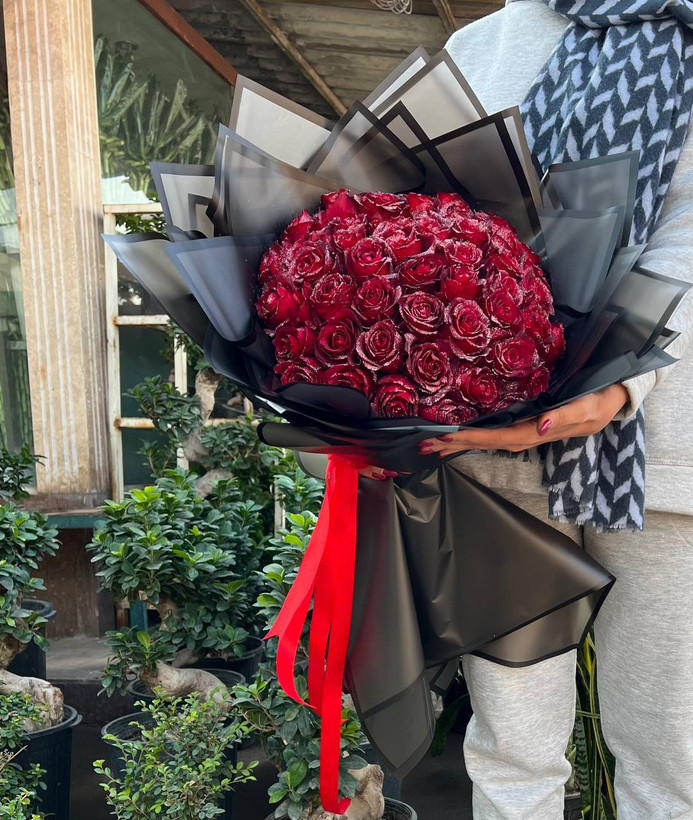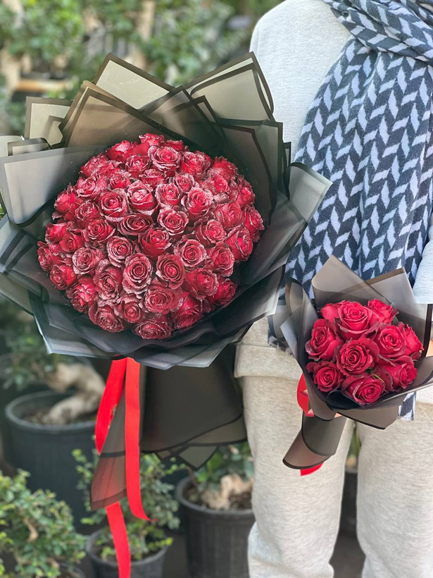 دسته گل غول پیکر ۶۰ شاخه رز قرمز ولی نه رز معمولی❤️🌹