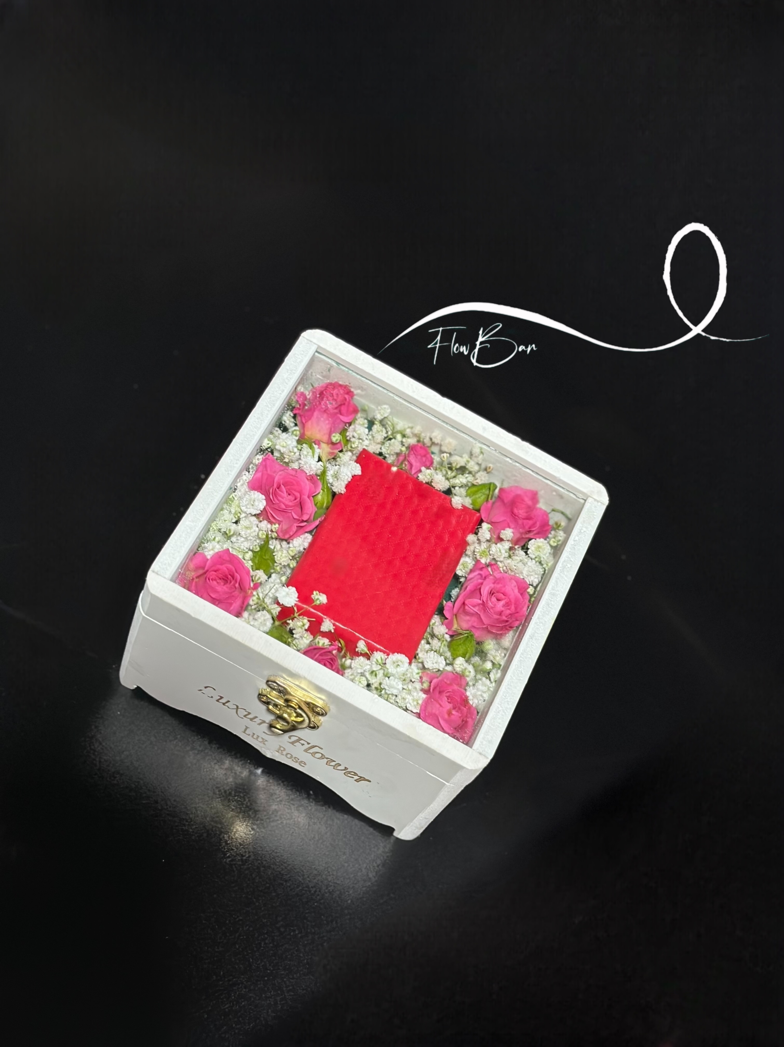 گل آرایی باکس حلقه عروس فلوبار