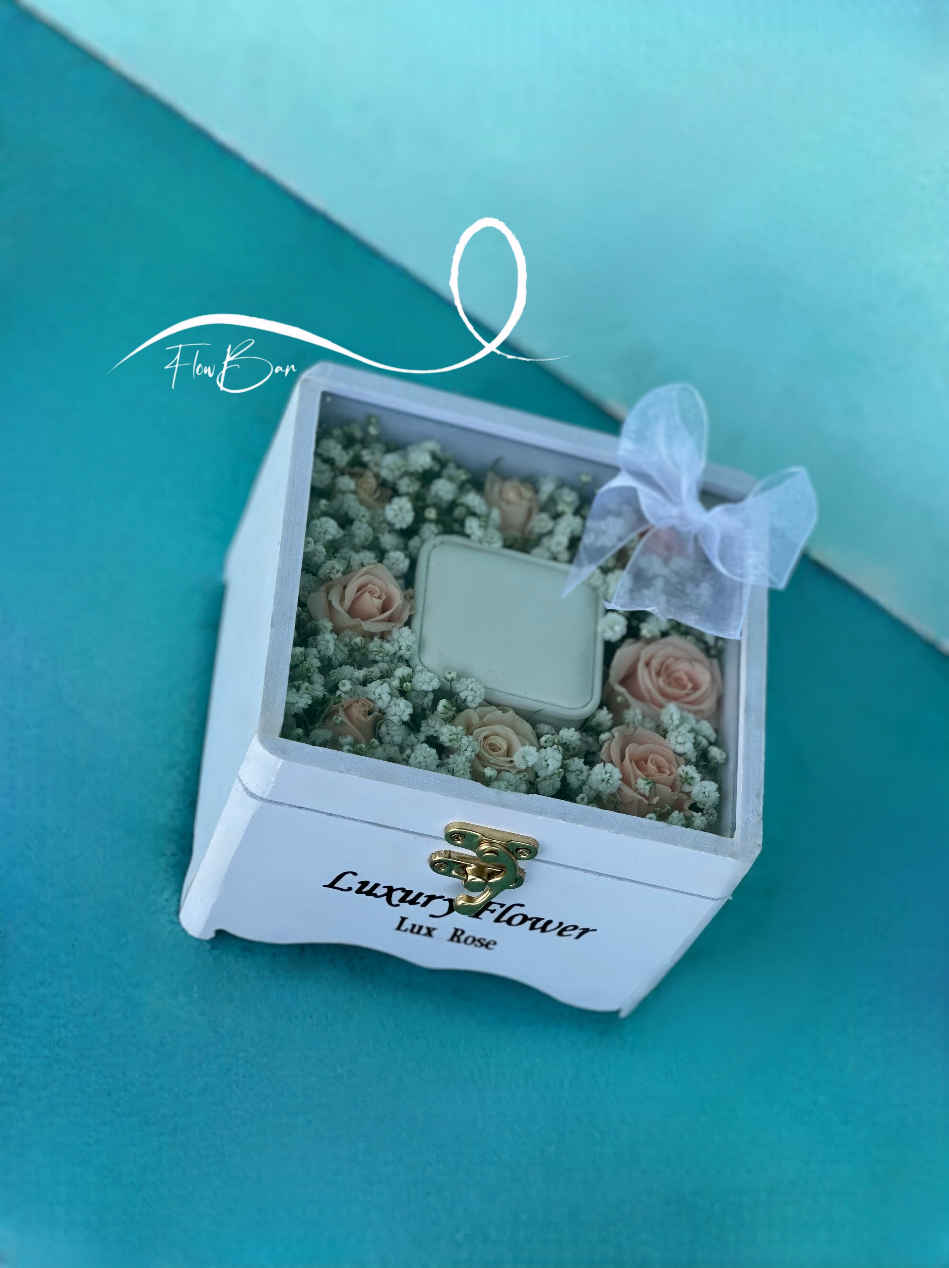 گل آرایی باکس حلقه عروس فلوبار