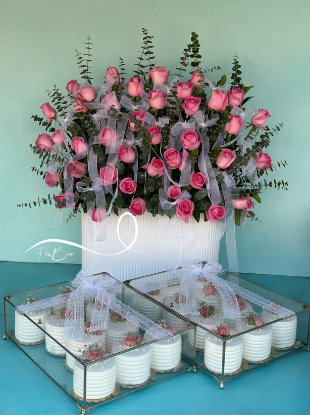 باکس گل و کاپ کیک خواستگاری صورتی فلوبار