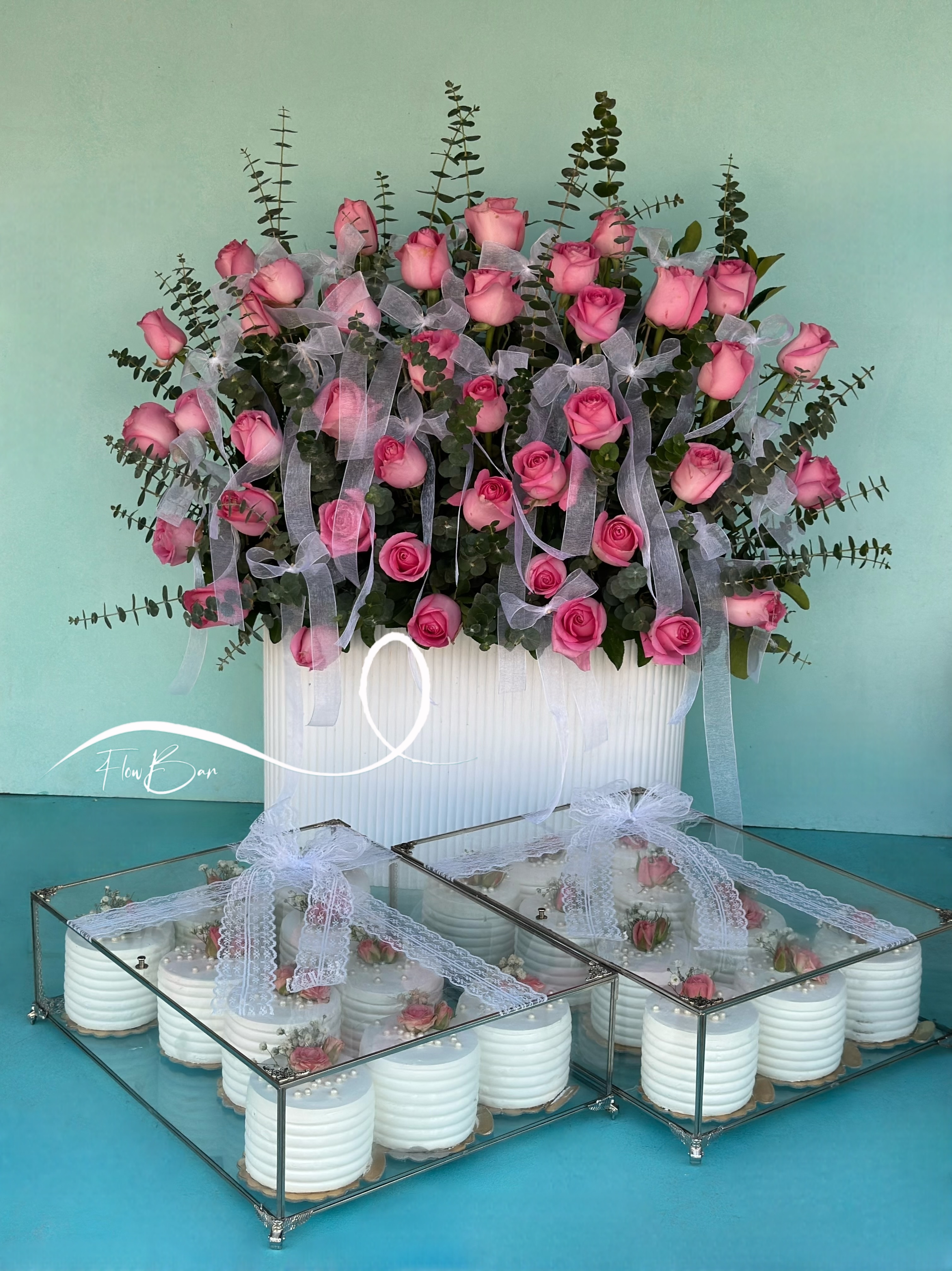 باکس گل و کاپ کیک خواستگاری صورتی فلوبار
