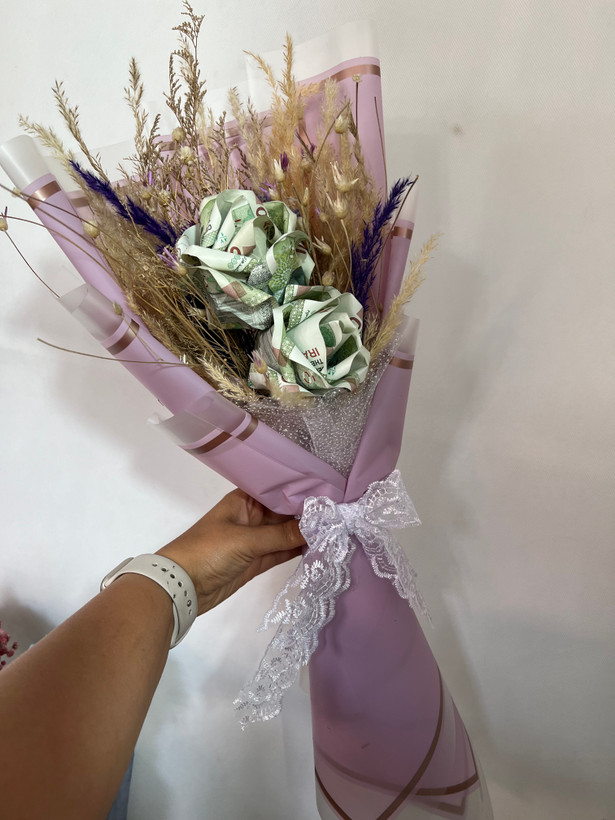 پول آرایی به صورت دسته گل به همراه گل خشک💵