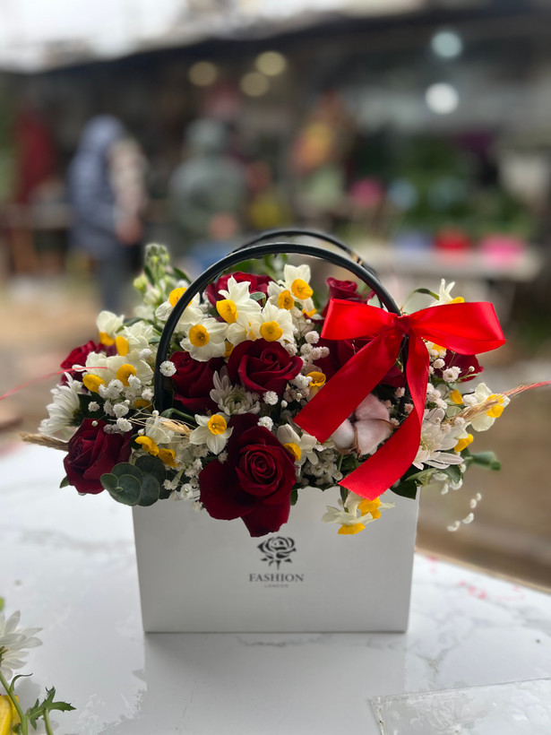 فلاوربگ رز قرمز و گل نرگس شیراز❤️💛