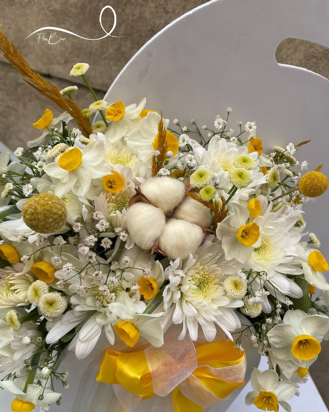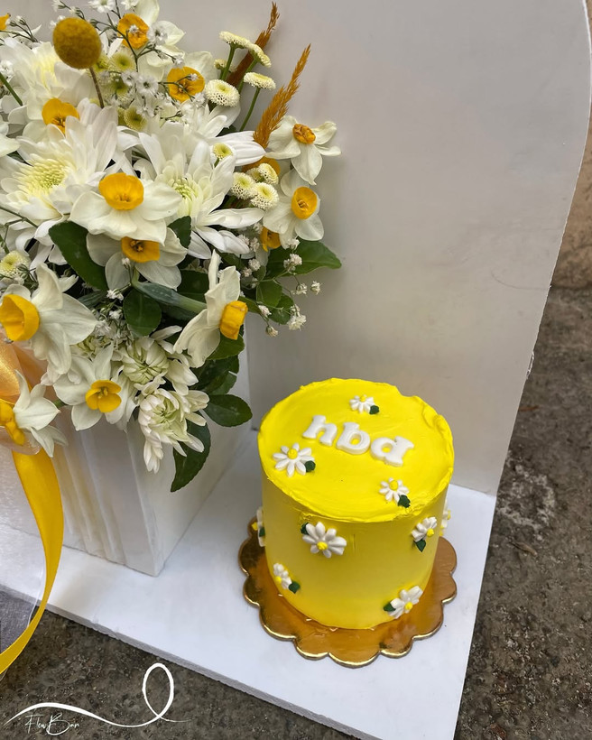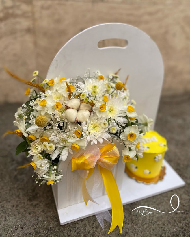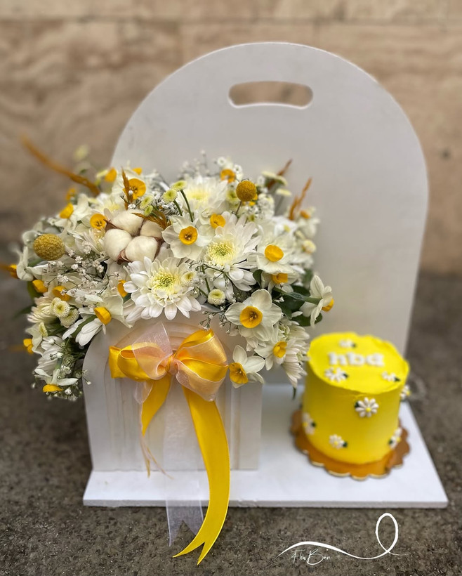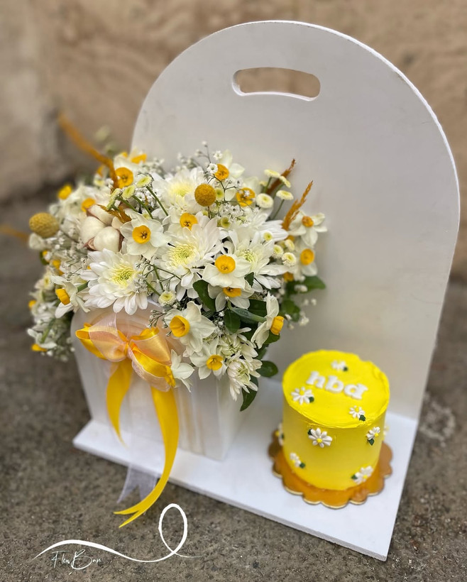 پک گل و کیک تولد با تم گل نرگس💛