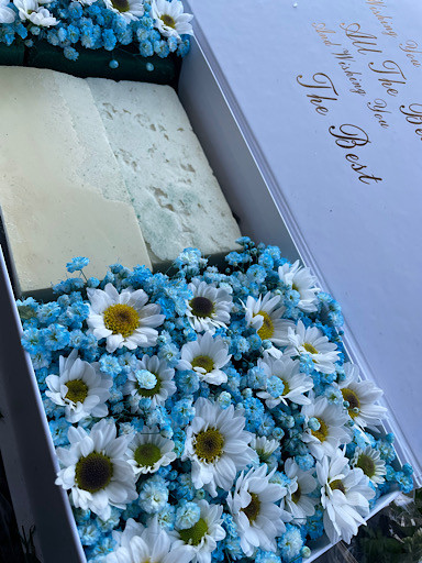 پول آرایی داخل باکس به همراه گل ژیپسوفیلا و داودی کرزنتیا آبی🩵💵