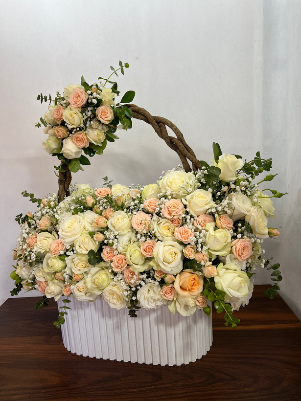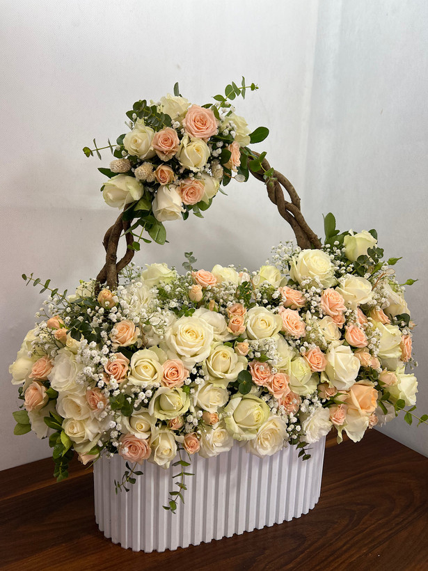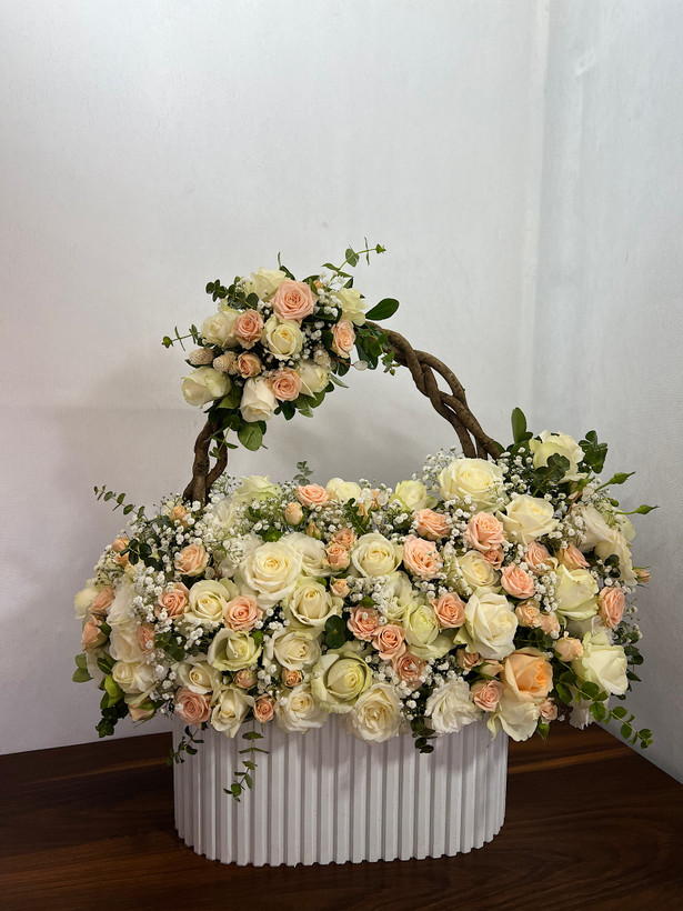 باکس گل دو طبقه سفید گلبهی خواستگاری فلوبار