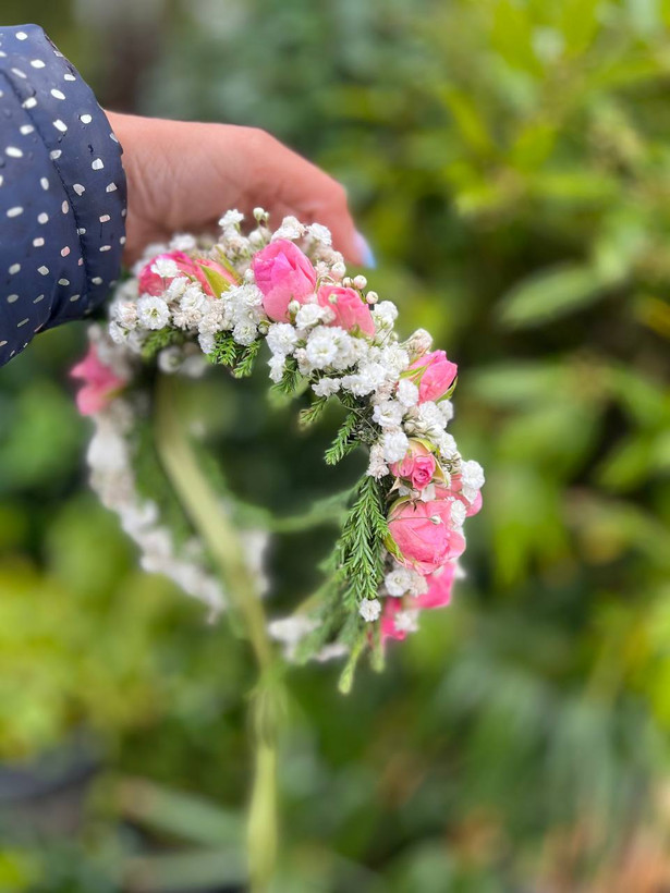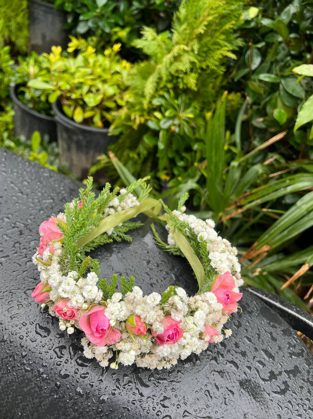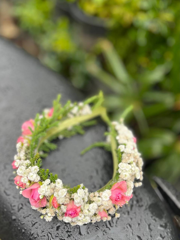 تاج عروس با گل طبیعی فلوبار