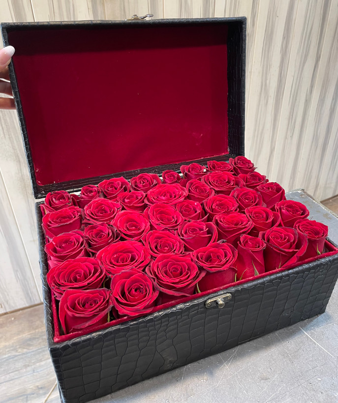 باکس گل صندوقچه ای چرمی دردار مشکی🖤❤️