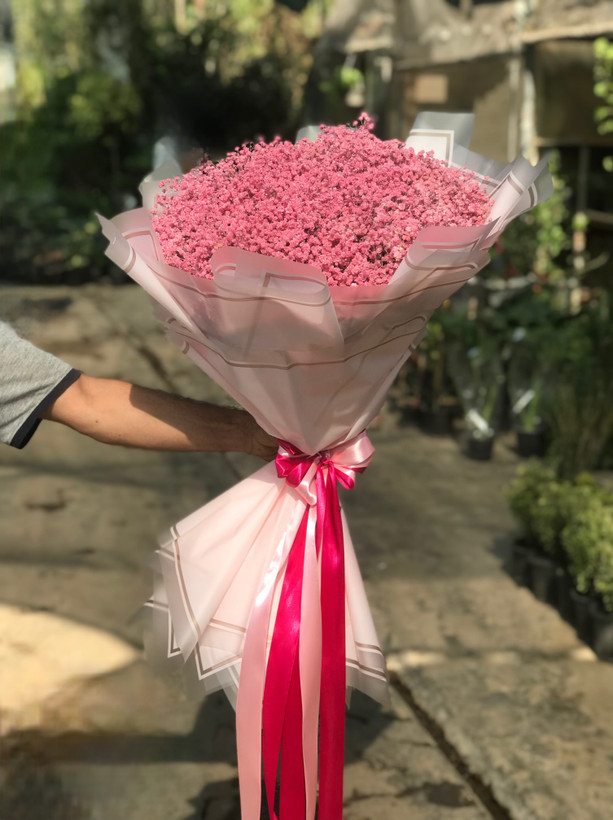 دسته گل غول پیکر سورپرایزی ژیپسوفیلا صورتی🩷