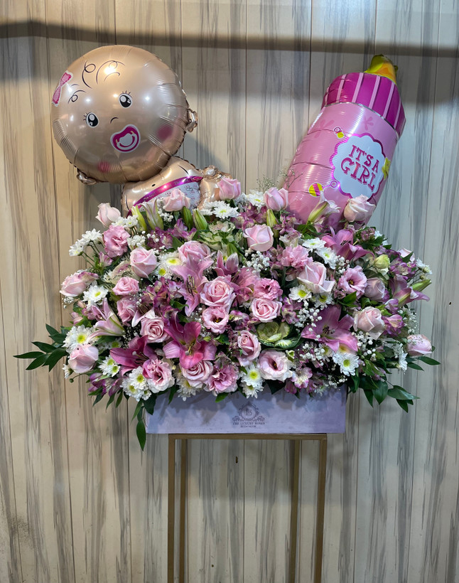 باکس گل و بادکنک نوزادی دخترونه فلوبار
