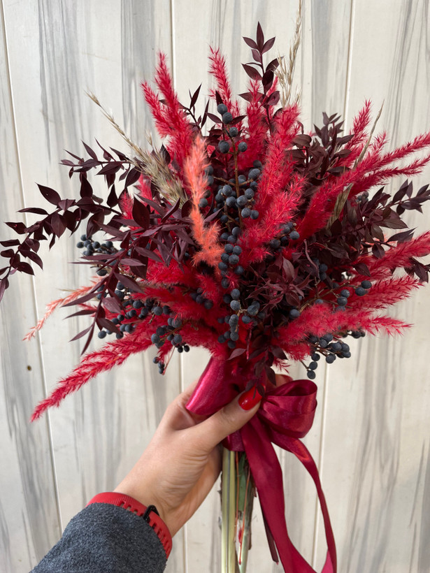 دسته گل فرمالیته قرمز و زرشکی❤️