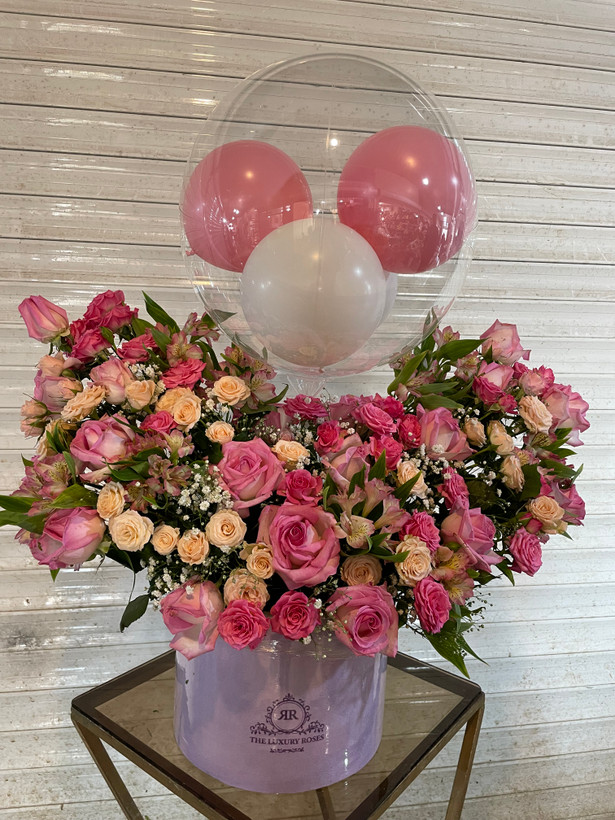 باکس گل و بادکنک نوزادی دخترونه فلوبار