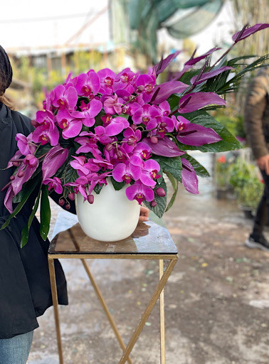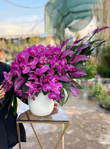 گلدان ارکیده بنفش و آنتریوم بنفش💜