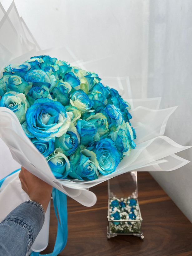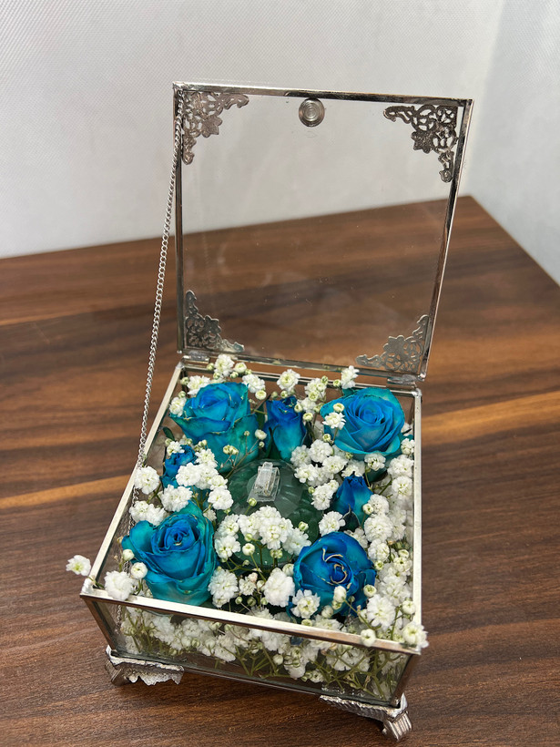 دسته گل و جای حلقه نشون و خواستگاری با تم آبی🩵