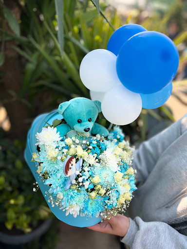 باکس گل نوزادی گهواره ای پسرونه🩵