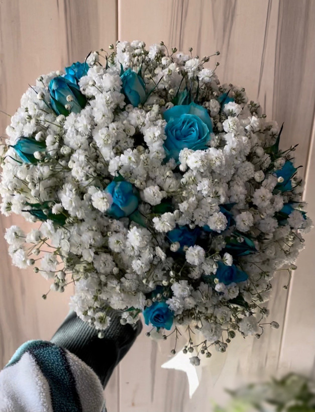 ژیپسوفیلا و رز مینیاتوری آبی🤍🩵