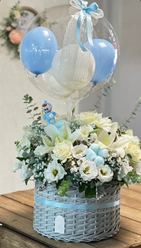 باکس گل و بادکنک نوزادی پسرونه فلوبار
