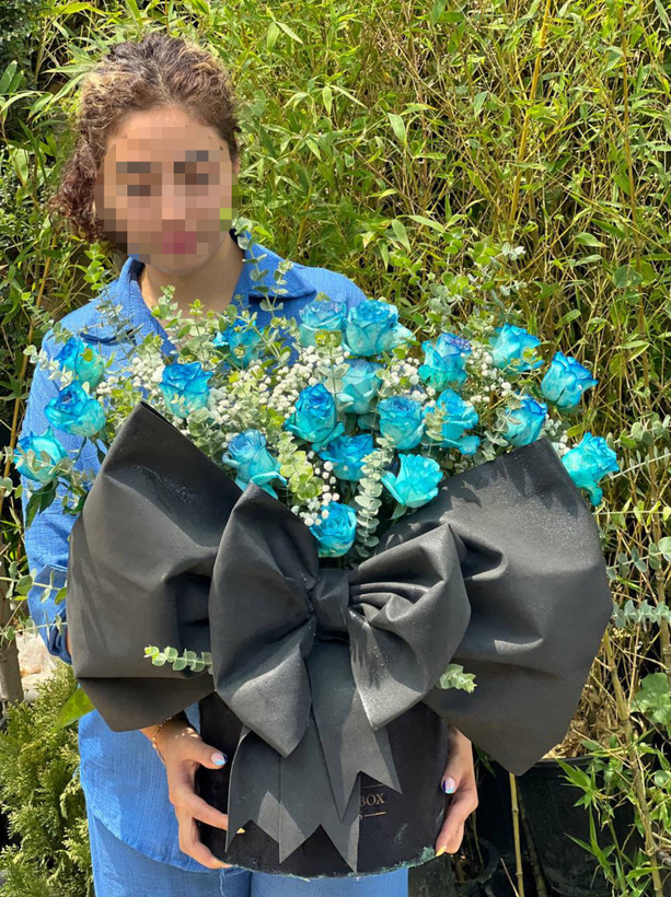 یه باکس گل با ترکیب جذاب رنگ آبی🩵