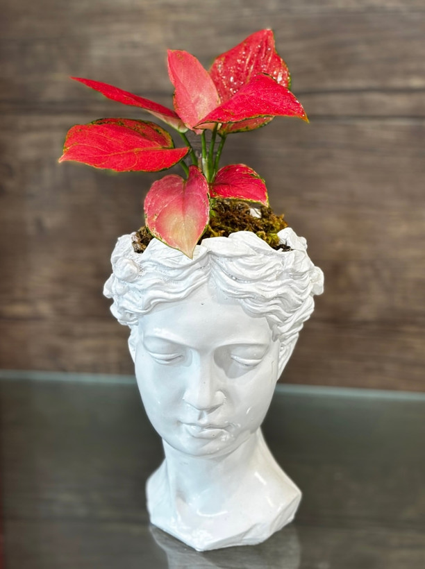 آگلونما قرمز با گلدان طرح چهره فلوبار