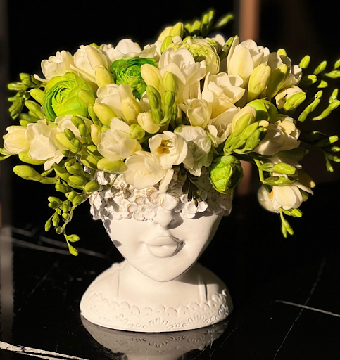 گل فرزیا و آنمون دیزاین داخل گلدان سفالی طرح چهره👤🪴