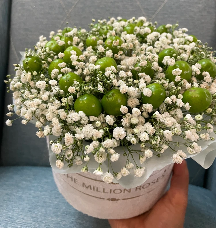 باکس گل ژیپسوفیلا و گوجه سبز نوبرونه💚🤍