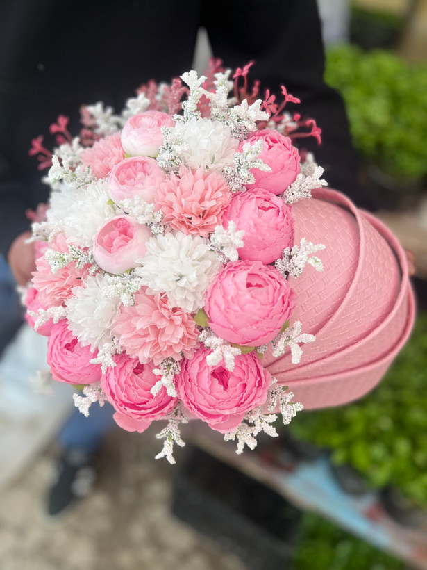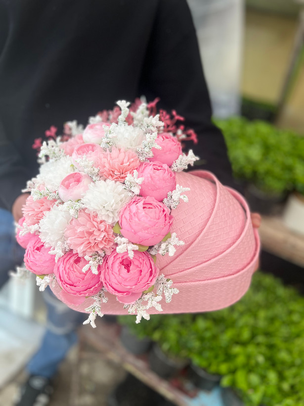 باکس گل گهواره ای نوزادی دخترونه با گل مصنوعی فلوبار