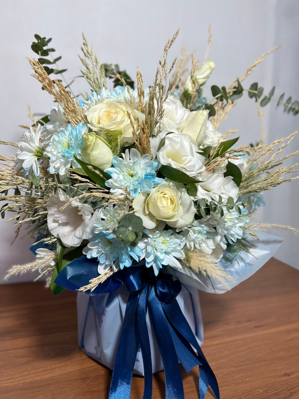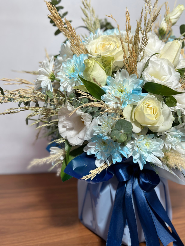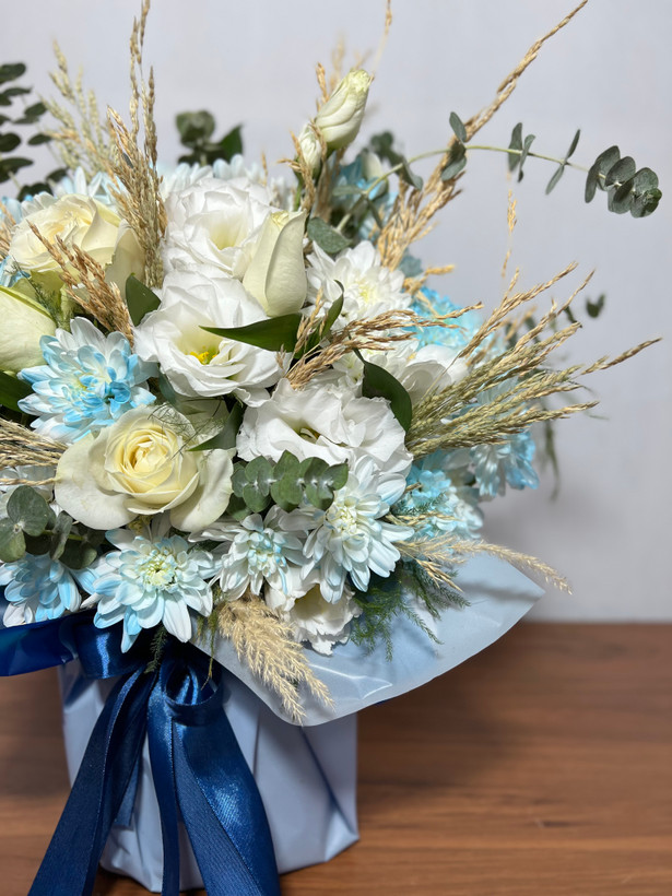 جار گل رز و لیسینتوس و داودی🤍🩵
