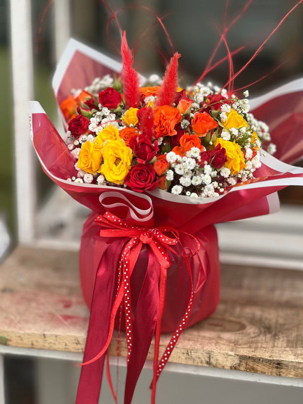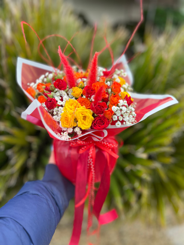 گل رز مینیاتوری در رنگبندی زرد، نارنجی و قرمز❤️🧡💛