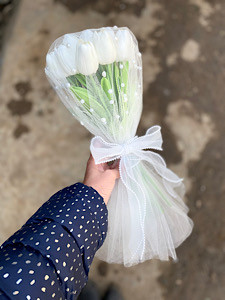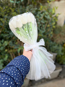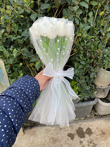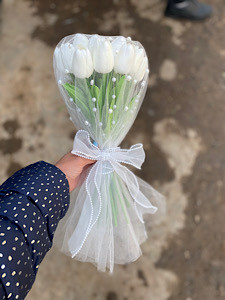 دسته گل عروس با لاله مصنوعی فلوبار