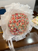 ✅ دسته گل ۶۰ شاخه رز لب ماتیکی و ژیپسوفیلا به همراه کاغذپیچی سفید