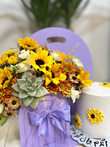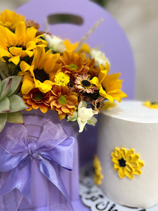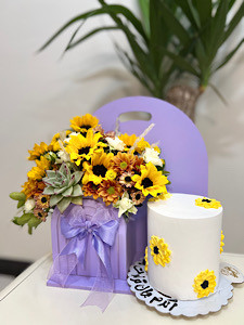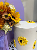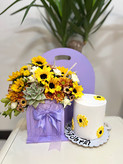 باکس گل و کیک تولد با تم آفتابگردون فلوبار