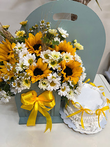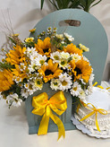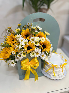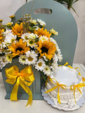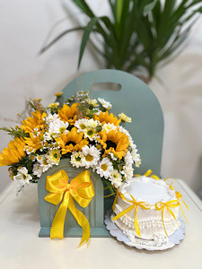 باکس گل و کیک تولد با تم آفتابگردون فلوبار