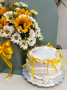 پک اقتصادی گل و کیک تولد با تم گل آفتابگردون و بابونه🌻