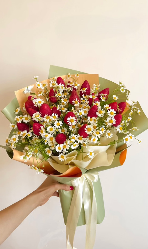 دسته گل بابونه و توت فرنگی نوبرونه🍓