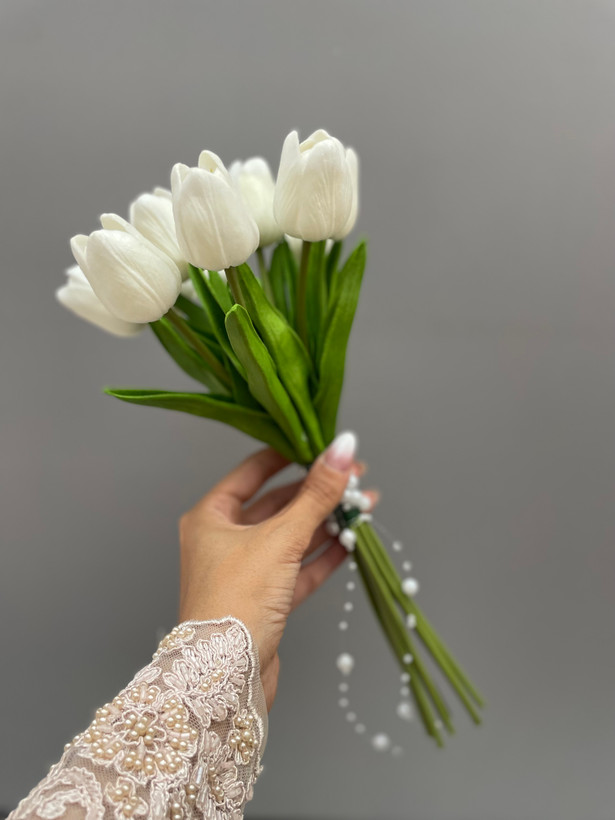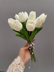 دسته گل عروس با لاله مصنوعی فلوبار