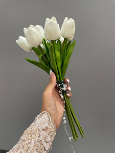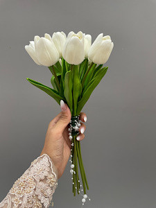 ۱۰ شاخه لاله مصنوعی لمسی به همراه نوار مرواریدی🤍