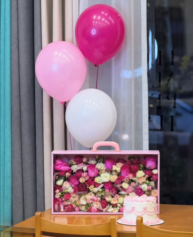 پک اقتصادی گل و کیک و بادکنک تولد با تم صورتی🩷