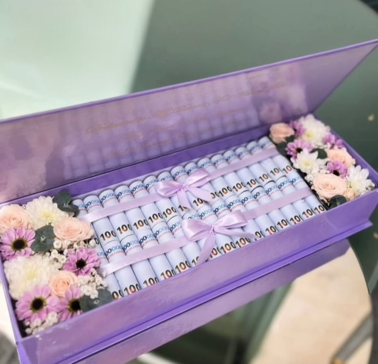 دیزاین اسکناس داخل باکس به همراه گل💵