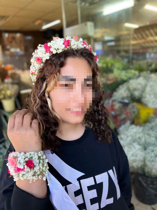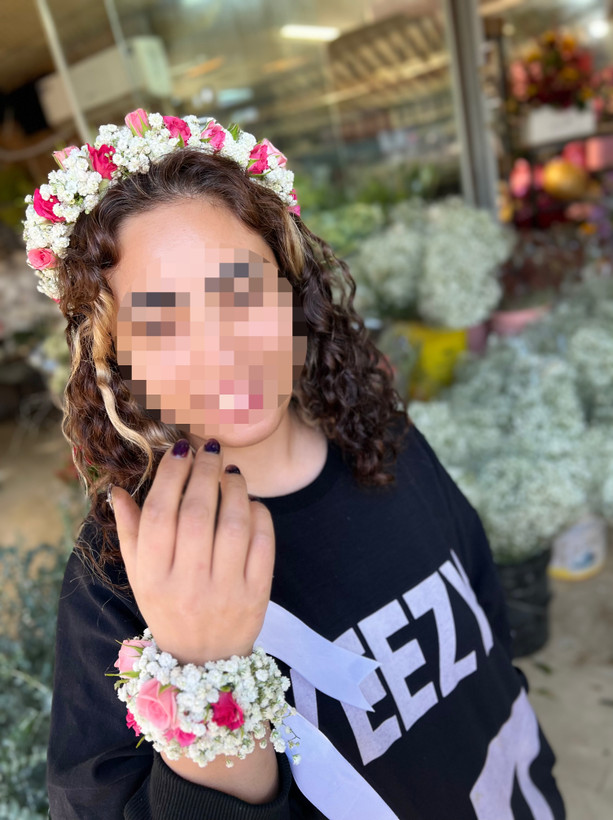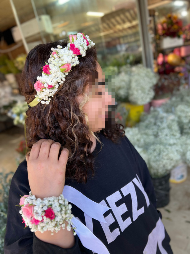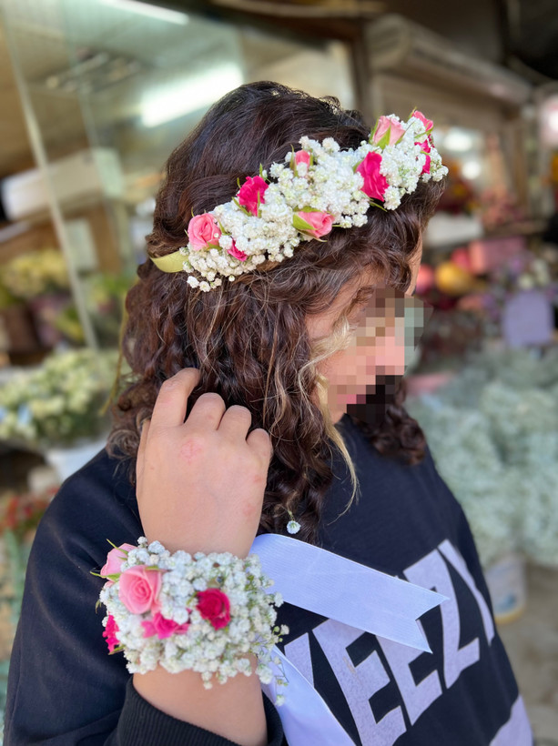تل سر و دستبند با گل طبیعی رز مینیاتوری و ژیپسوفیلا🤩