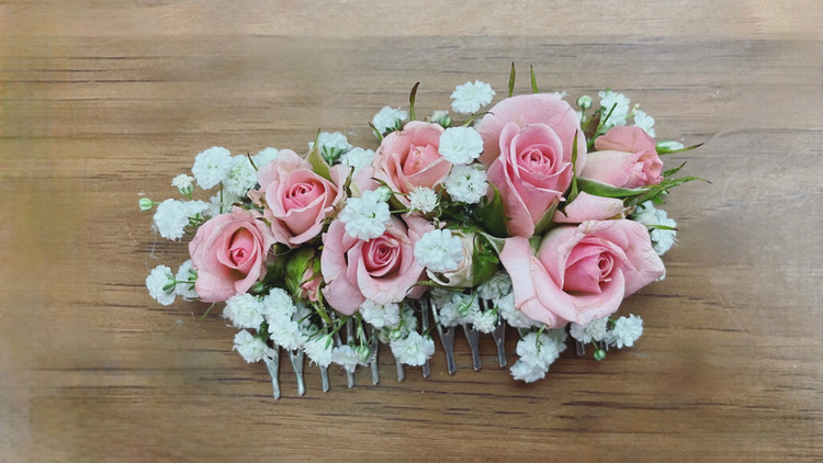 شانه سر با گل طبیعی رز مینیاتوری و ژیپسوفیلا🤩