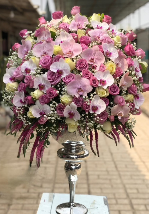 ۴۰ شاخه رز سفید و رز صورتی به همراه ۳۰ عدد ارکیده🌸