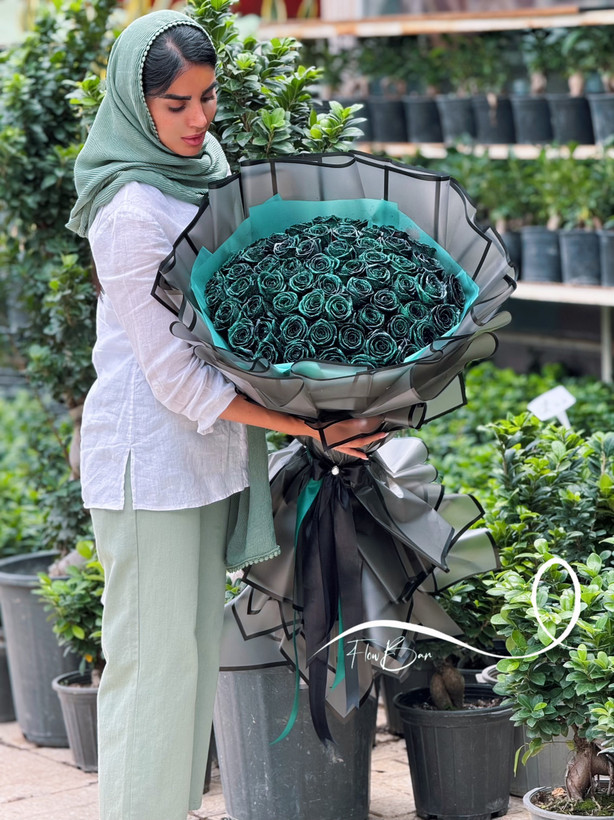 دسته گل ۶۰ شاخه رز سبز ولی نه رز معمولی💚