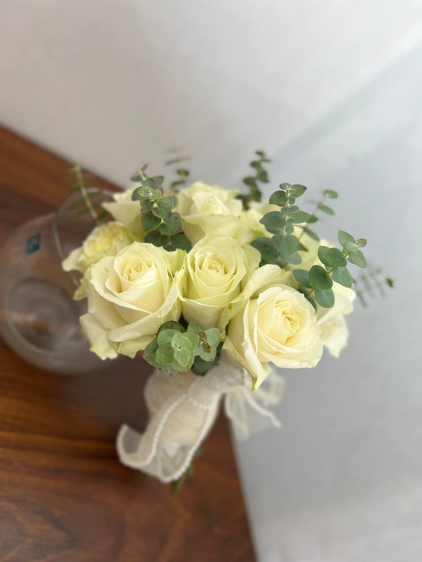 گل رز سفید با اکالیپتوس🤍