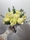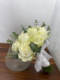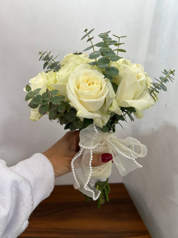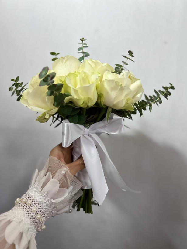 دسته گل عروس با رز سفید فلوبار