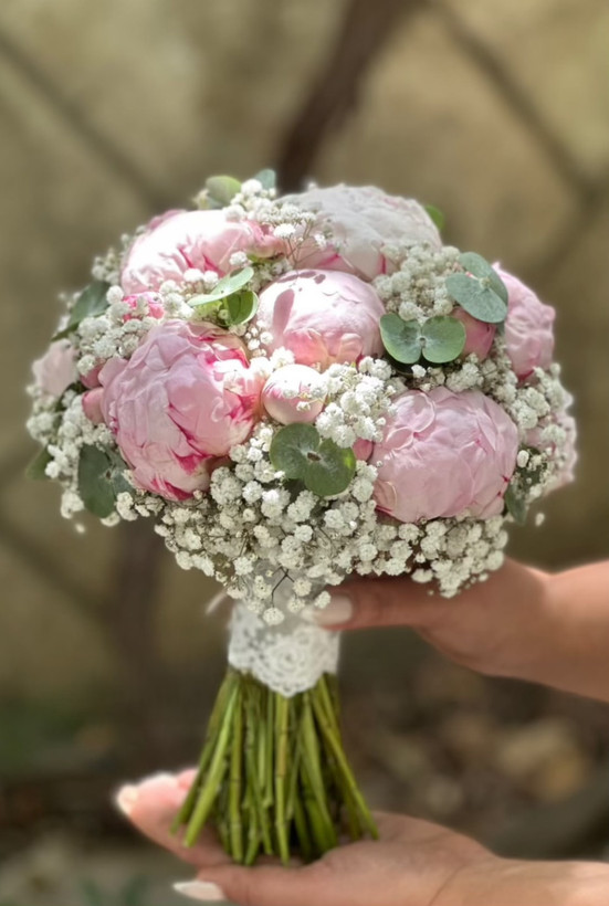 گل پیونی طبیعی صورتی، ژیپسوفیلا و اکالیپتوس🩷🤍