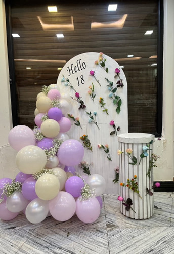 بادکنک آرایی با تم سفید یاسی فلوبار