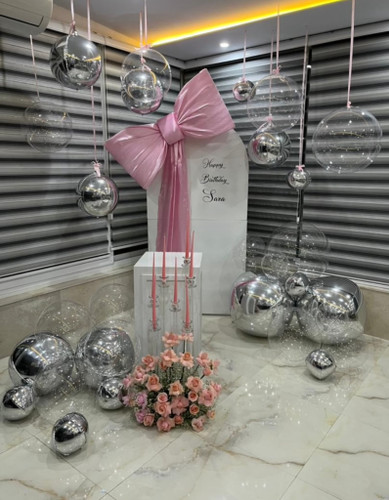 بادکنک آرایی با تم سفید صورتی فلوبار