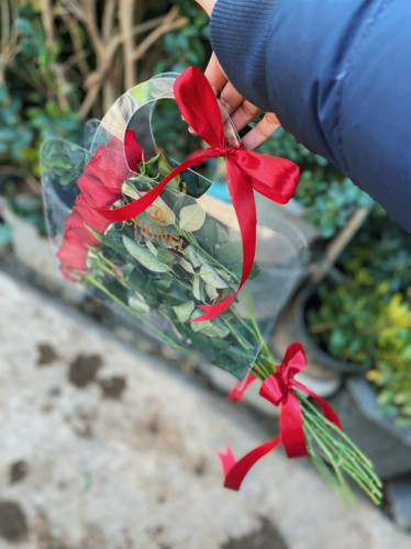گل رز قرمز داخل فلاوربگ طلقی فلوبار
